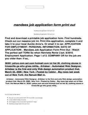 Read MANDEE PRINTABLE JOB APPLICATION Reader